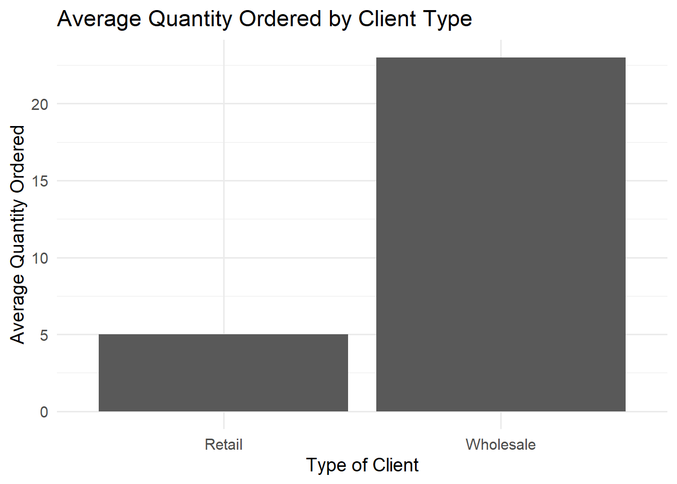 This 12 % difference in revenue share, equivalent to $31,883, is likely due to the larger order sizes placed by business customers (see Figure 1). Because they work on multiple vehicles, businesses tend to purchase motorcycle parts in greater quantities, resulting in higher total order values compared to individual retail customers.